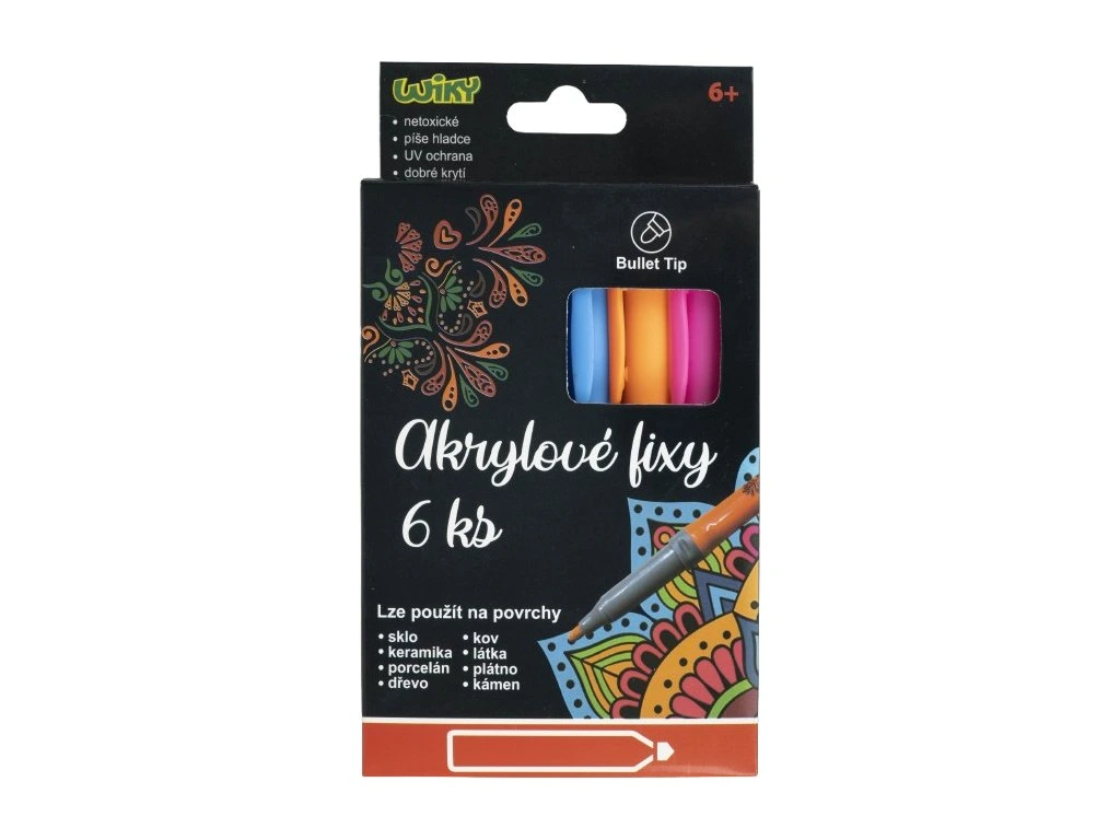 - Sada 6 akrylových fixů v různých barvách