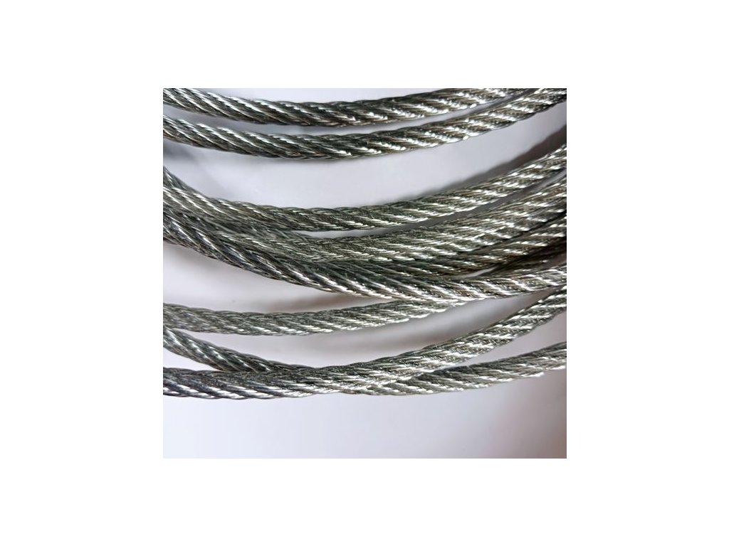 Standardní ocelové lano se středním počtem drátů, lano vyhovuje požadavkům na vyšší ohebnost.