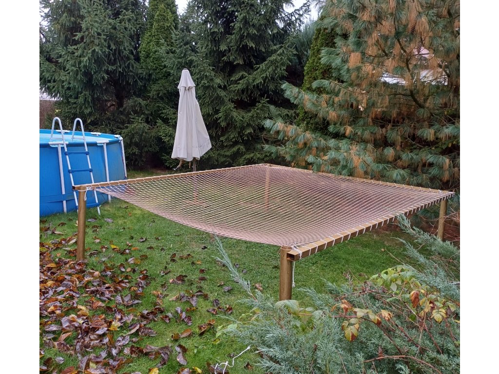 Polypropylen: Vysokopevnostní polypropylen o průměru šňůry 5mm a velikost oka 45mm. Materiál je je známý svou odolností a pevností - pevnost v oku je 310kg.
