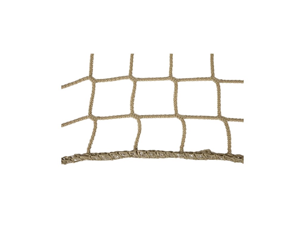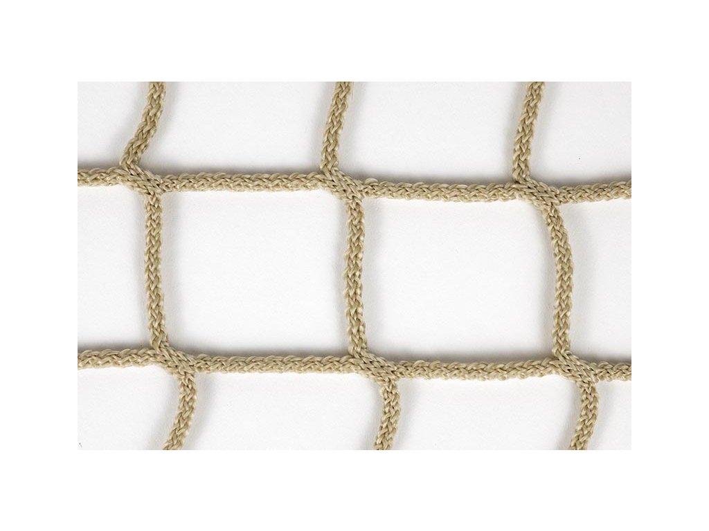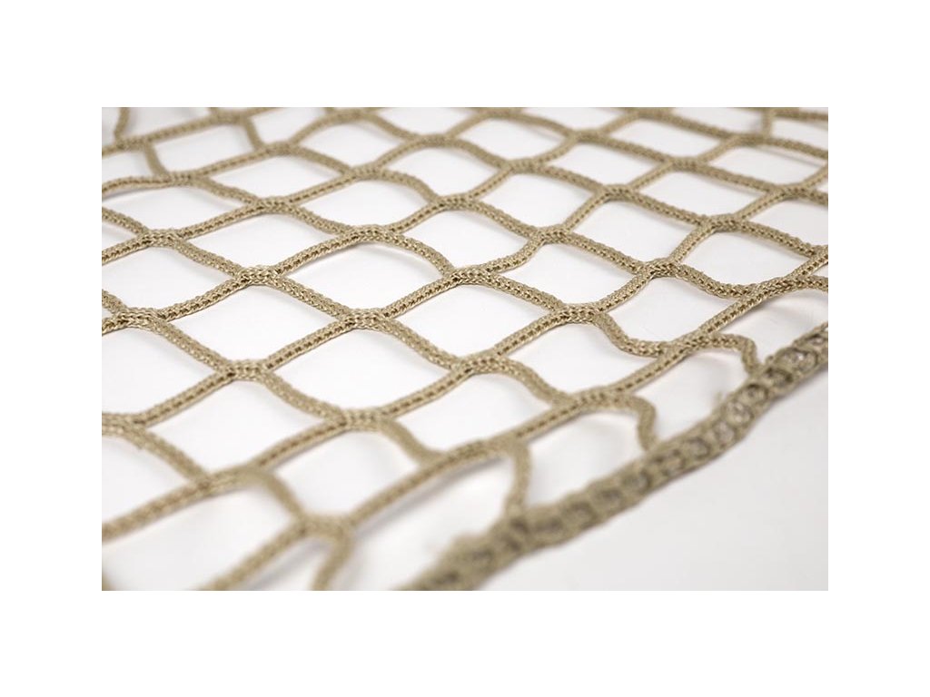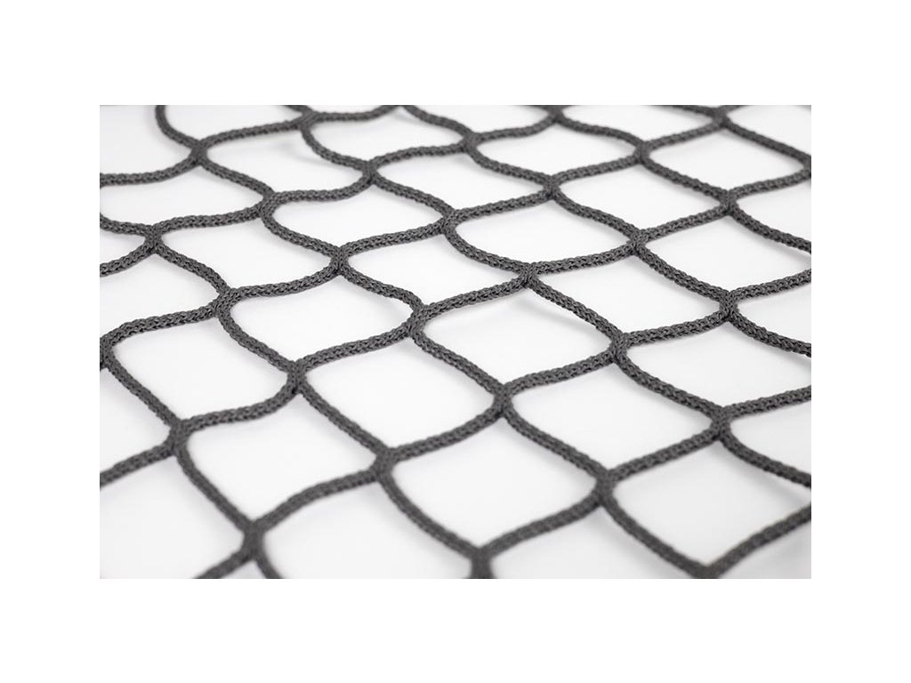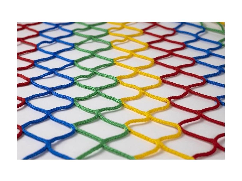 Polypropylen: Vysokopevnostní polypropylen o průměru šňůry 3mm a velikost oka 45mm. Materiál je je známý svou odolností a pevností - pevnost v oku je 120kg.