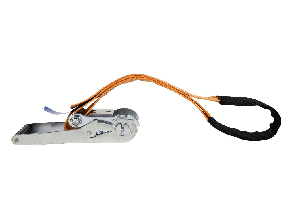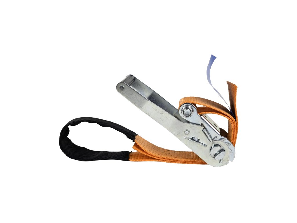 Upínací pás se skládá z pevné části s ráčnou a okem (délka 0,5m) a volného popruhu s okem.